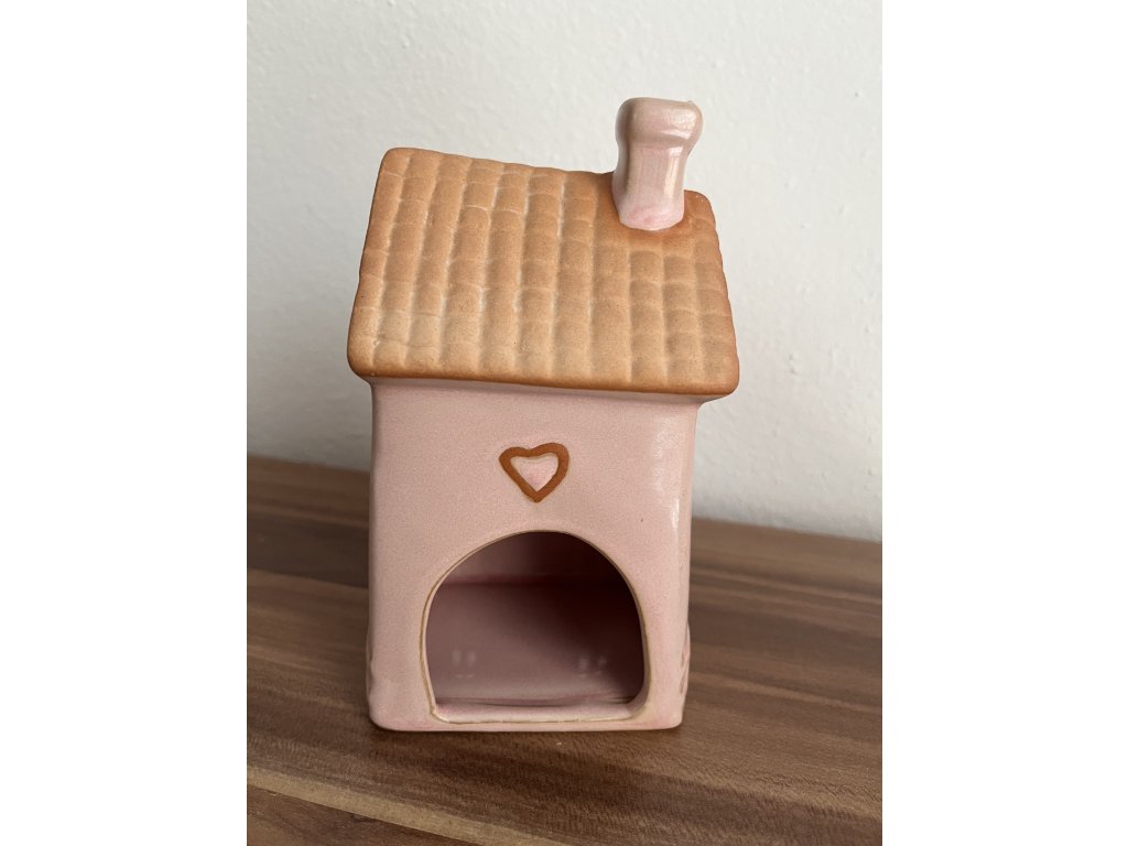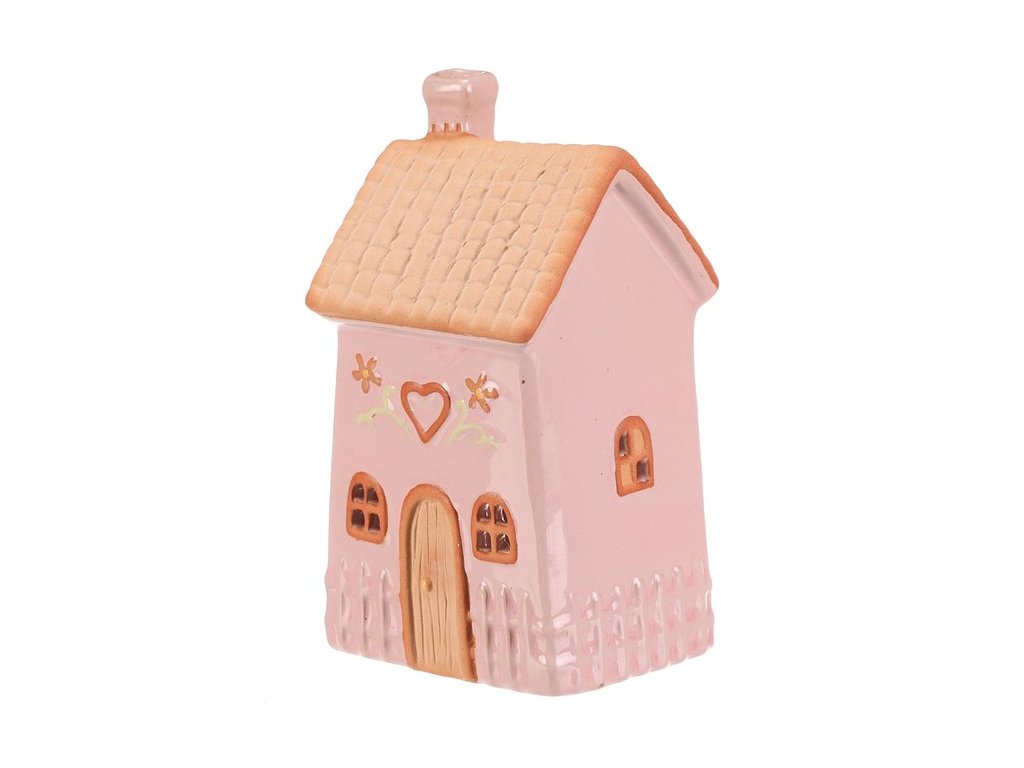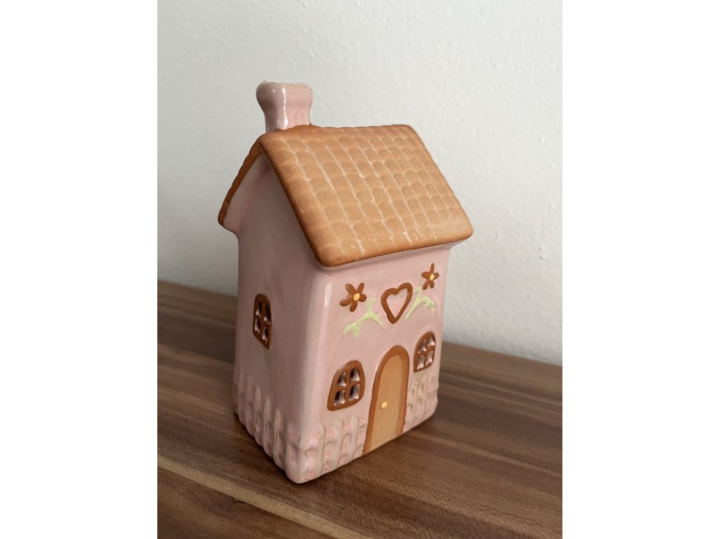 Keramický svícen domek na čajovou svíčku růžový – Jarní dekorace