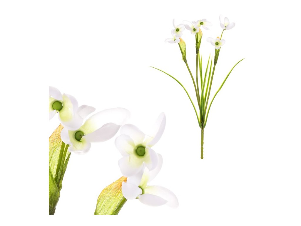 Umělé sněženky 31 cm jsou elegantní květinovou dekorací, která věrně napodobuje jemnou krásu jarního kvítí. Díky realistickému zpracování a čistě bílé barvě působí přirozeně a svěže po celý rok. Tyto umělé květiny nikdy neuvadnou a zachovávají si svůj půvab bez jakékoli údržby.