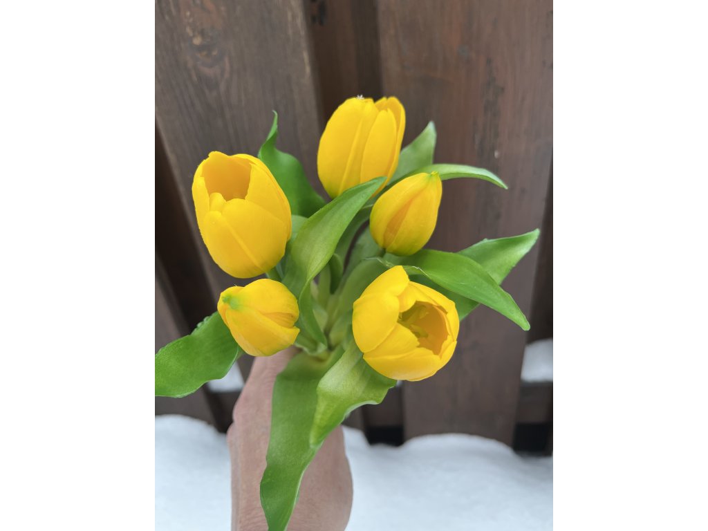 Umělé tulipány silikonové žluté – kytice 27 cm