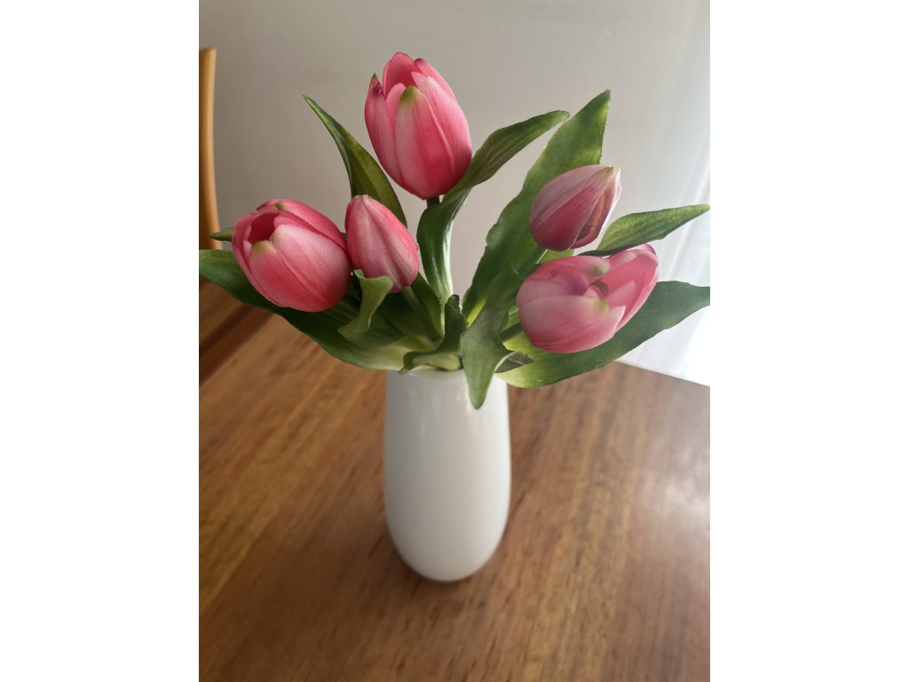 Detailně tvarované okvětní lístky v kombinaci se zelenými listy vytvářejí lehký a harmonický celek. Umělé tulipány si dlouhodobě zachovávají svůj tvar i barvu a nevyžadují žádnou péči, což z nich činí ideální bezúdržbovou dekoraci.